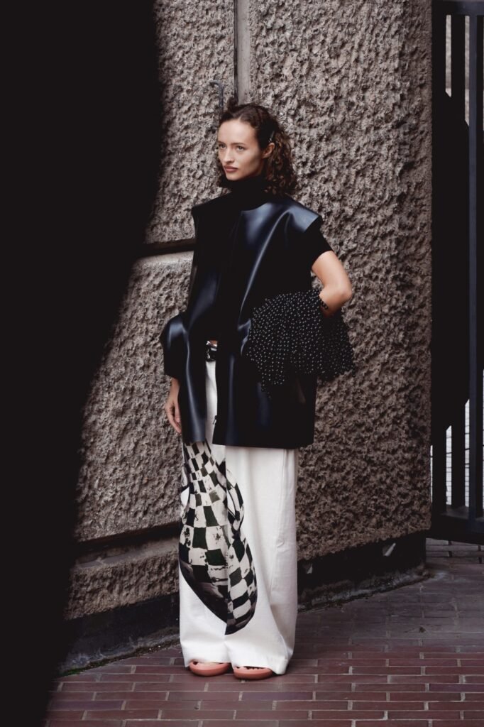 “It’s one of the rare places in the city where concrete and jungle coexist,” Harri explained. “That duality made it the right stage for MuseumWear, which also exists between imagination and lived reality.” The clothes carried this vision forward: a continuation of his latex Design language but reimagined for everyday wear. Beading, patterned denim, and playful mini accessories injected joy and immediacy into the looks. “I imagine people wearing these pieces to places where they want to feel heightened, curious, or seen – not only in cultural spaces, but also in the flow of everyday city life,” the designer added.